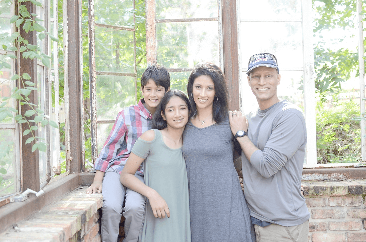 Quinlan Park Dental founder Dr. Sumita Chakraborti with her family: L-R: son Anand, daughter Mia, husband Mark, who is currently in treatment for an aggressive and rare form of cancer.