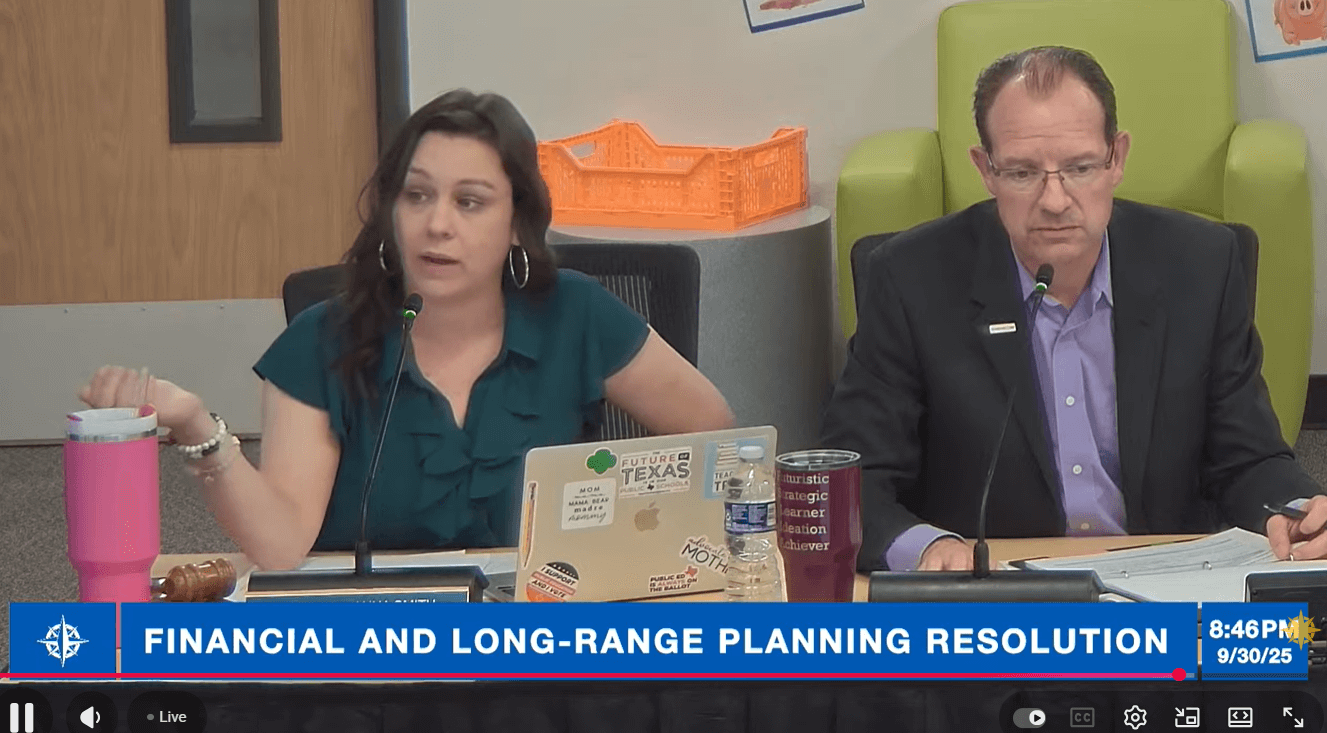 Also during the September 18 regular board meeting, trustees were asked to provide input on a resolution regarding “Financial Sustainability and Long-Range Facility Planning for Leander Independent School District”. The purpose of the resolution is to establish a clear process, define roles, outline timelines, and identify information the board needs to make key decisions affecting the 2026–27 school year and beyond.
