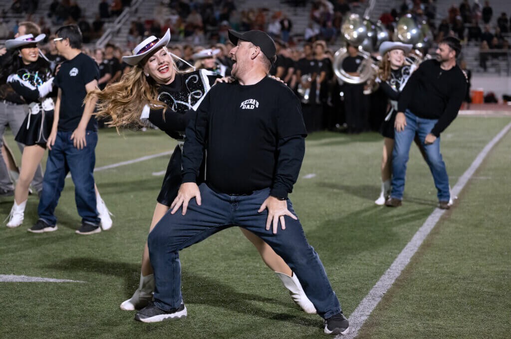 The Vandegrift Legacies dance team lit up the field on October 31 with their beloved annual tradition, “Man of the Hour.” This special halftime performance pairs each dancer with her dad or an influential man in her life for a memorable routine under the Friday night lights.