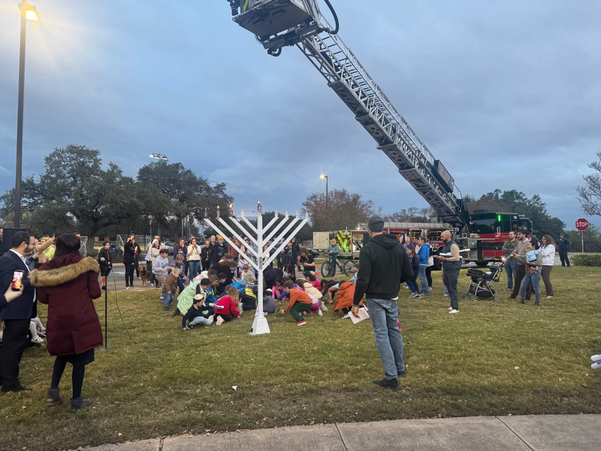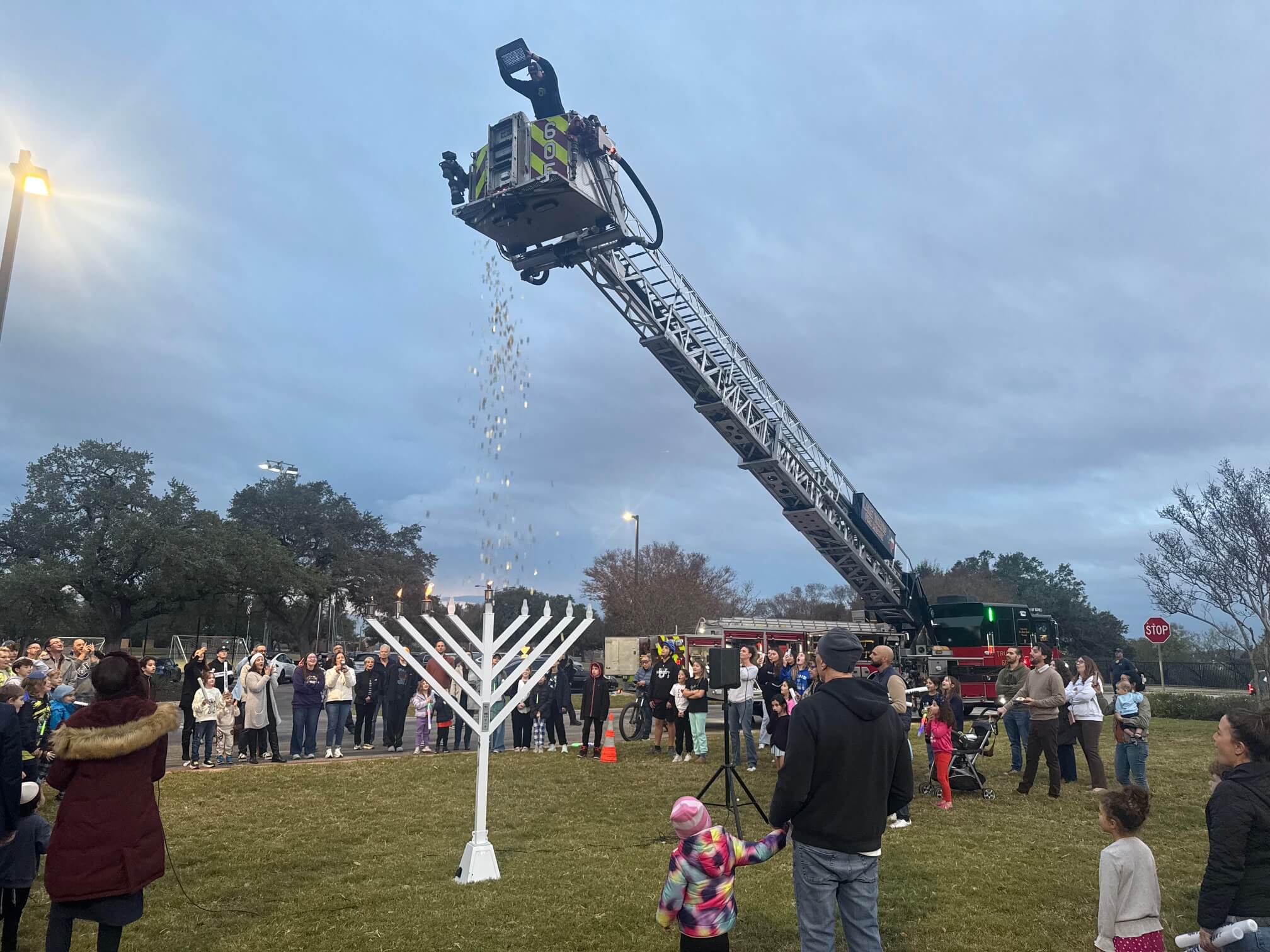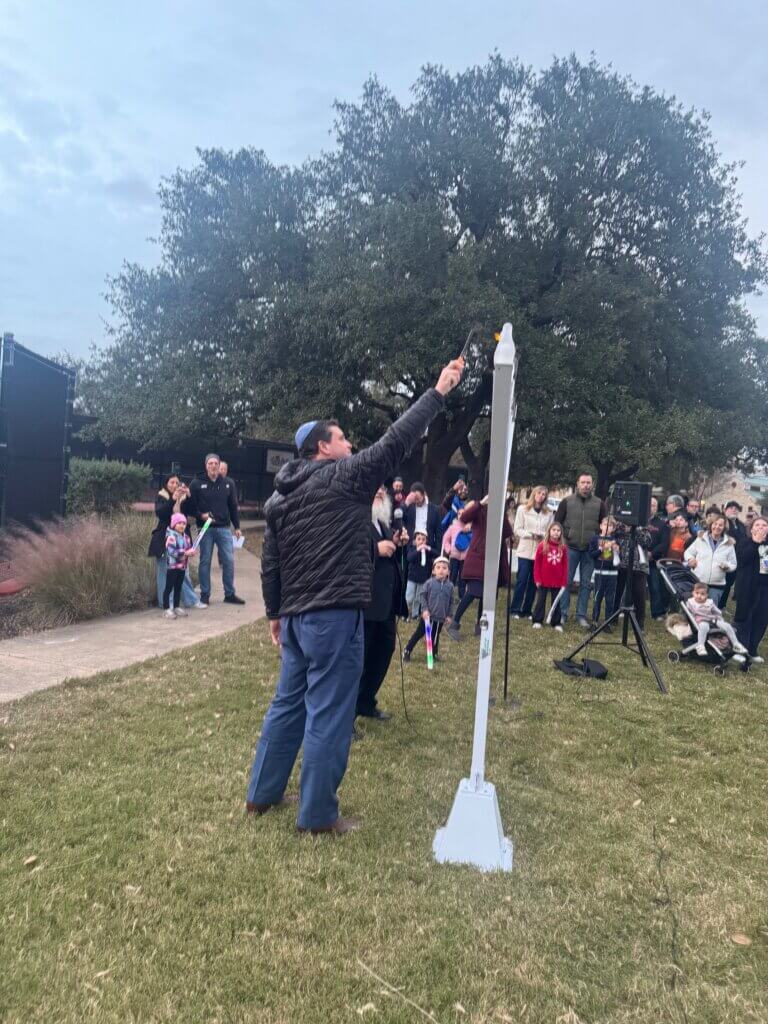 The Steiner Ranch Menorah Lighting on December 16 at Towne Square Community Center brought together many in the community. Lake Travis Fire Rescue Fire chief Robert Abbott was given the honor to light the menorah. This year LTFR dropped traditional Hanukkah chocolates from their craned truck, shared Amy Yukich, Steiner resident.