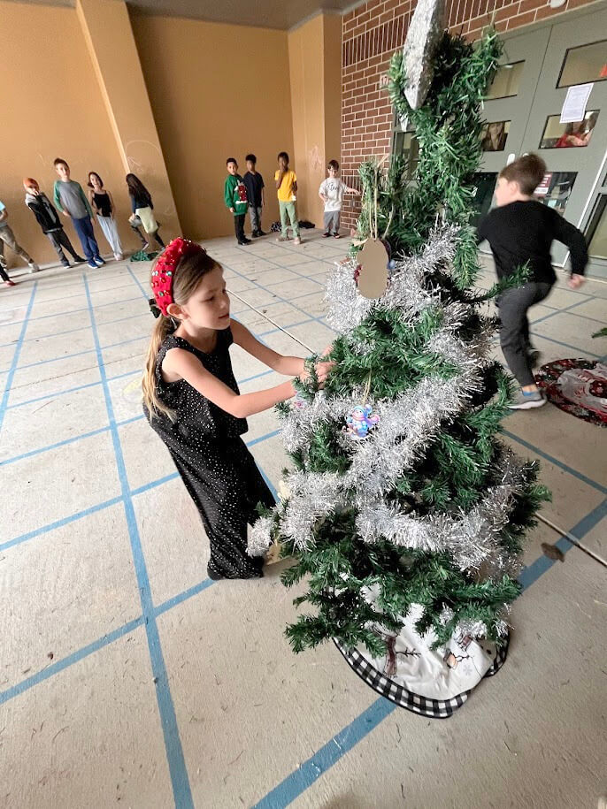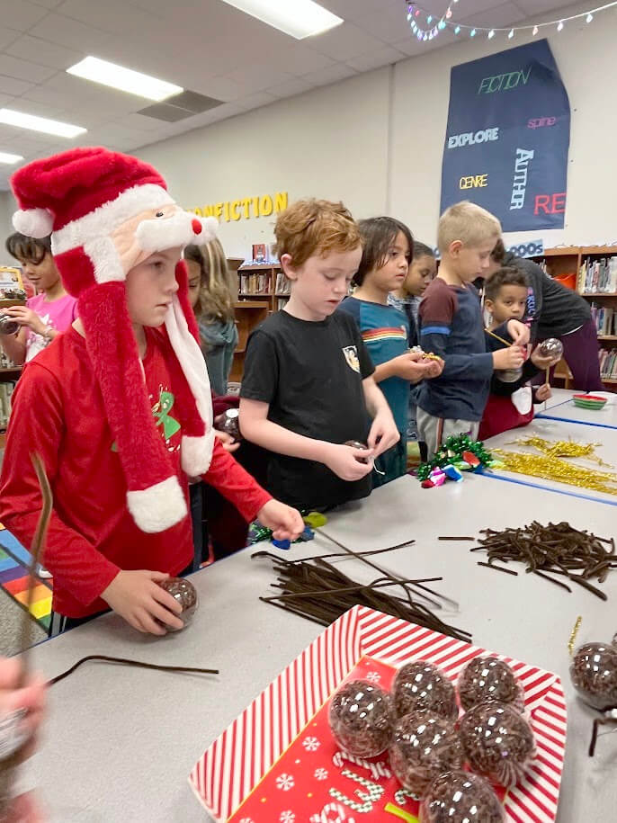 River Place Elementary hosted a Winter Party on December 16 complete with Christmas tree decorating relays, reindeer ornament-making, and a photo booth. RPE students also updated parents on their learning progress. Photos by Lynette Haaland