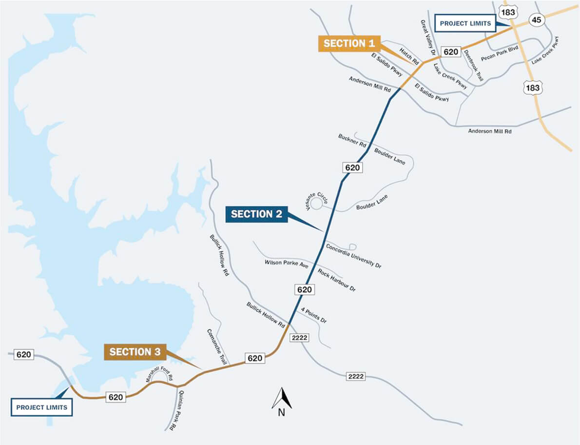 Last week the Texas Department of Transportation shared “Corridor Refinement Study” information at local meetings. There are three sections along RM 620 North, from Mansfield Dam to to US 183, that are targeted for mobility improvements.