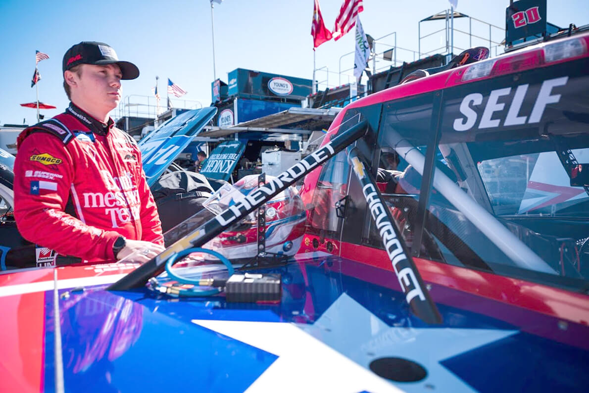 Austin Wayne Self 05.01.19 ← Previous Next → Austin Wayne Self, who grew up in the Four Points area, is a professional stock car racer who drives No. 22 Chevrolet Silverado for AM Racing.