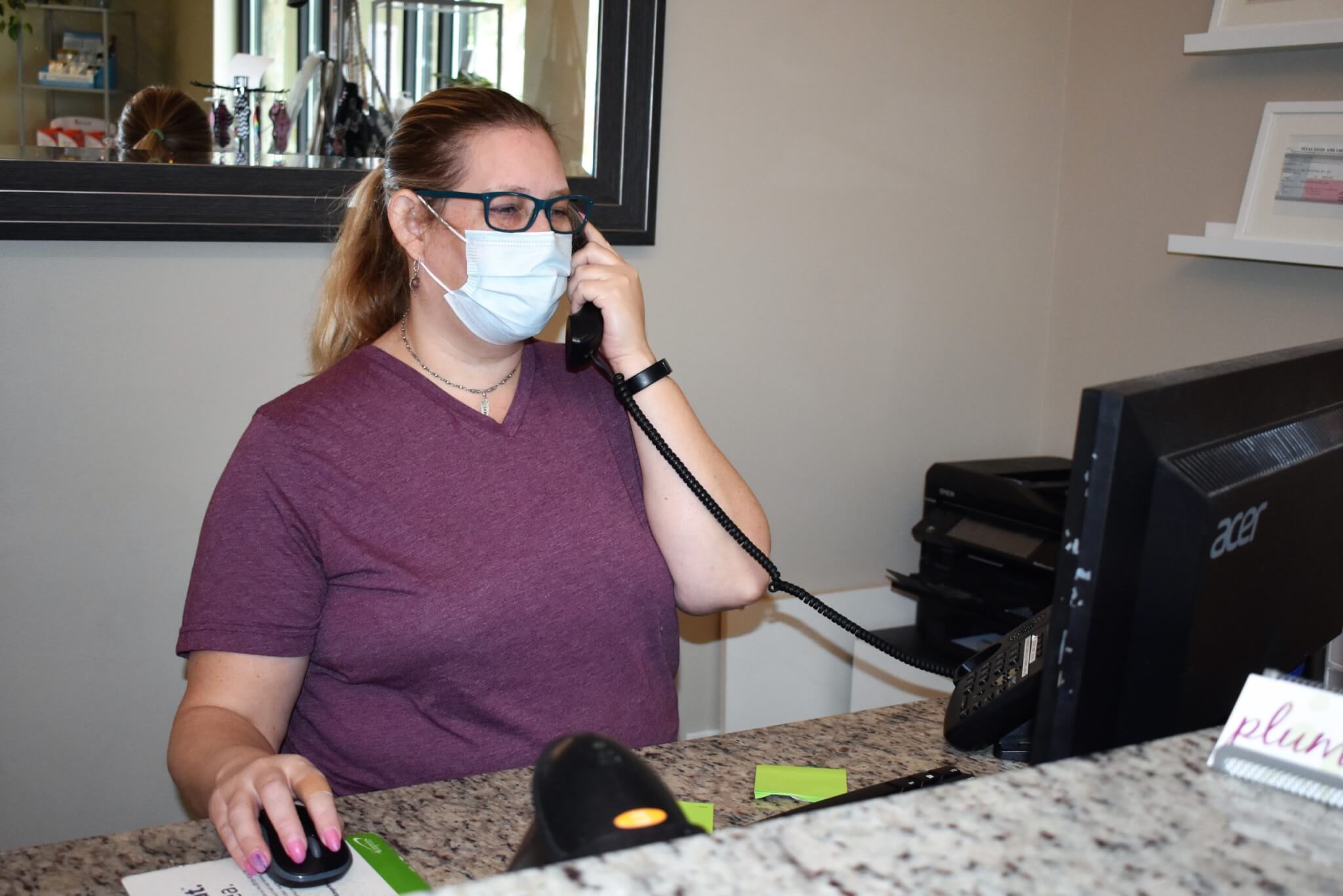 beau3 ← Previous Next → Sally Parks, owner of Plum Natural Nail & Skin Spa, speaks to a customer making an appointment at the salon. LESLEE BASSMAN