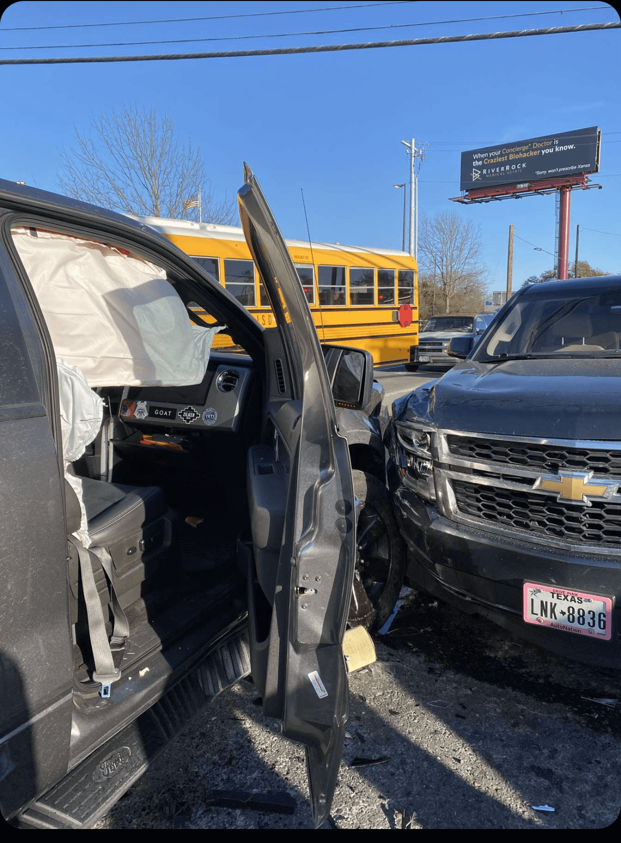 crash2 ← Previous Next → Two pickup trucks collide at a multiple vehicle crash on Feb. 2 around 4:30 p.m. at RM 2222 and RM 60. Submitted photo