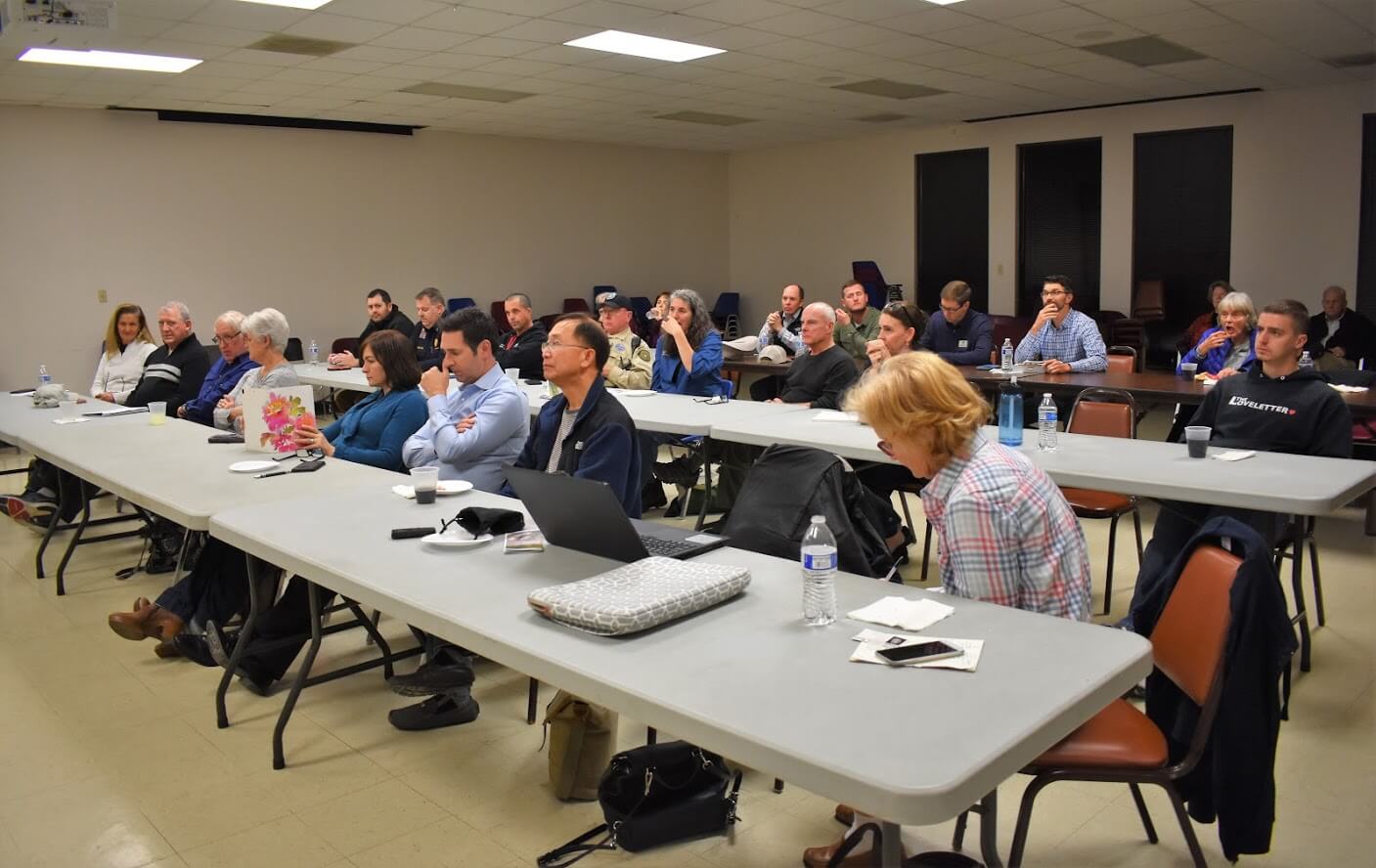 Comanche Trail residents fill Travis County West Service Center in January to discuss wildfire mitigation concerns with personnel of the local and state agencies that would respond to a natural disaster in the area. LESLEE BASSMAN