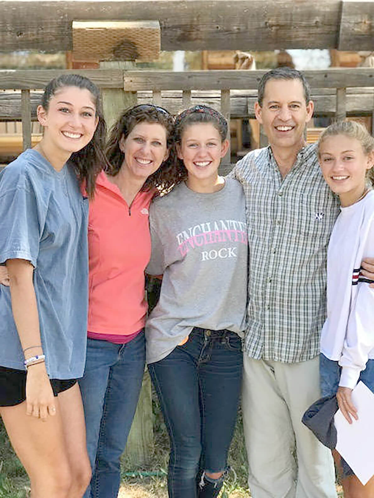 Denison family 2 ← Previous Next → Lisa Denison (left of center) and her daughters Antonia (left), Caroline (center), Natalie (right), and husband. Photo submitted by Lisa Denison.