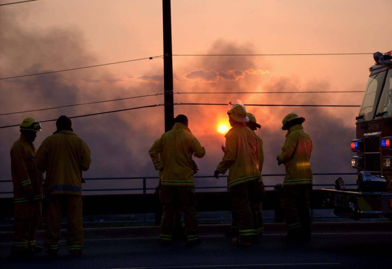 Firefighters regroup during the Sept. 4, 2011 fires in Steiner Ranch that destroyed 23 homes. Photo from Travis County’s William Boettner