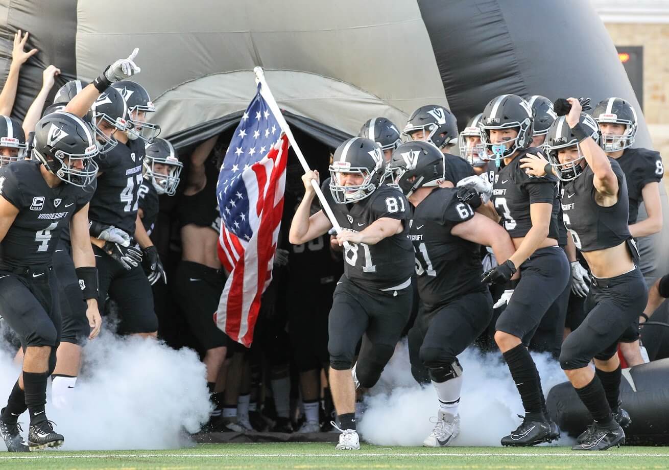 The Vandegrift Vipers take the field for a high school football game between Vandegrift and Cedar Park at Monroe Stadium in Austin, Texas on August 30, 2019.