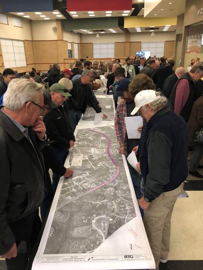 Community members look at maps showing plans to improve RM 620 South at the Texas Department of Transportation public hearing on Feb. 20 at LTHS. BRAD WHEELIS, TxDOT