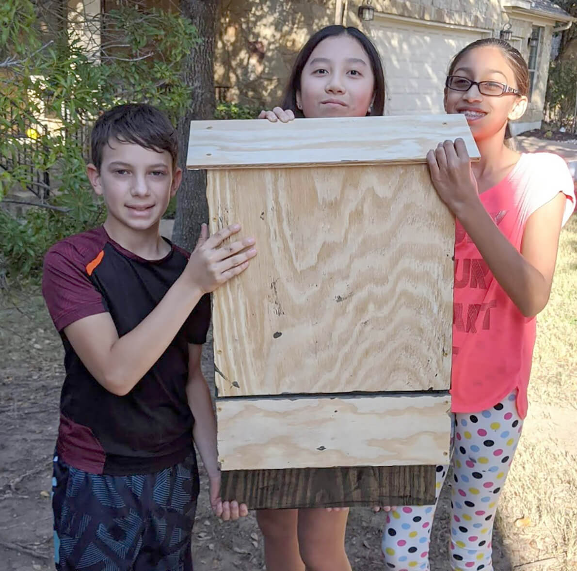 Bat-teries members build a four chamber bat house using the actual plans from Bat Conservation International. This bat house can fit over 200 bats. This is before painting
