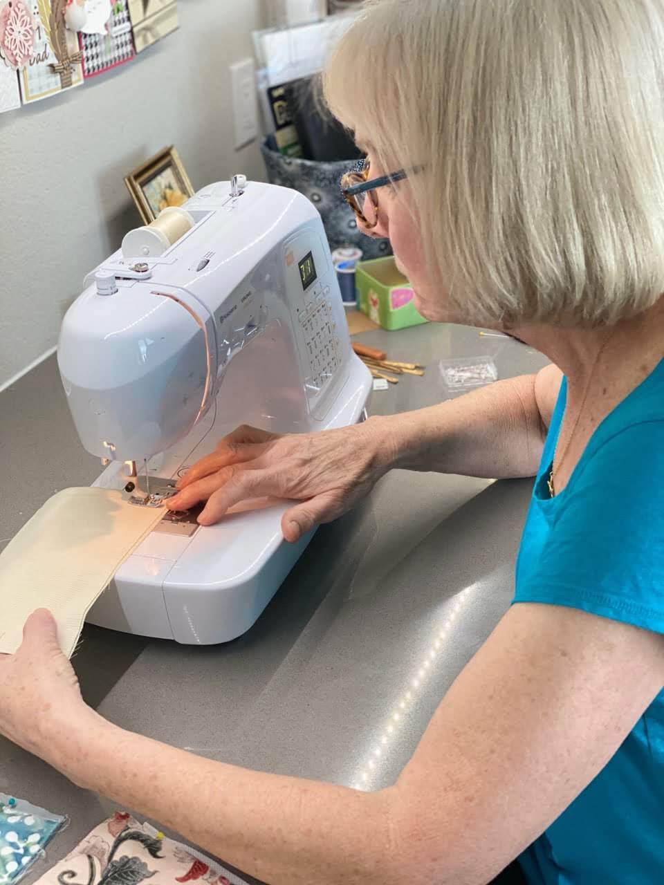 Candyce Welch sews and creates face masks between 8 and 12 hours a day.