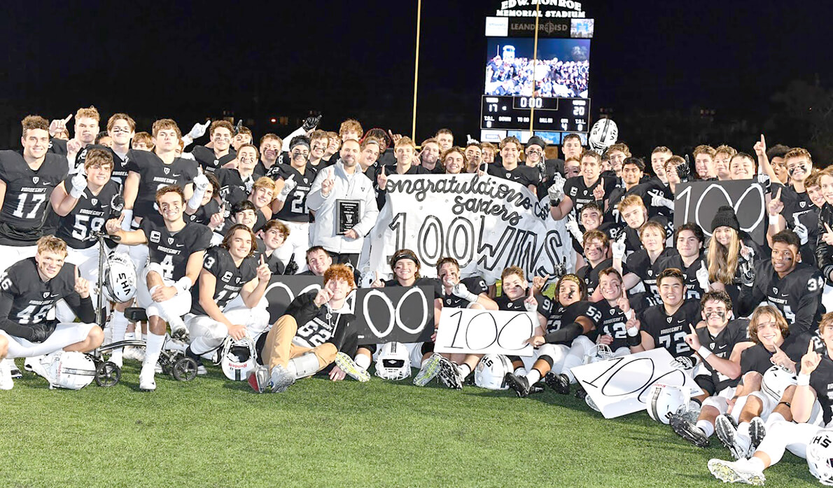 After the Vandegrift Viper varsity football team beat Stony Point 20-17 on Nov. 8 at Monroe Memorial Stadium, it marked the 100th career win for Drew Sanders, head football coach. JIM PARKER PHOTOGRAPHY