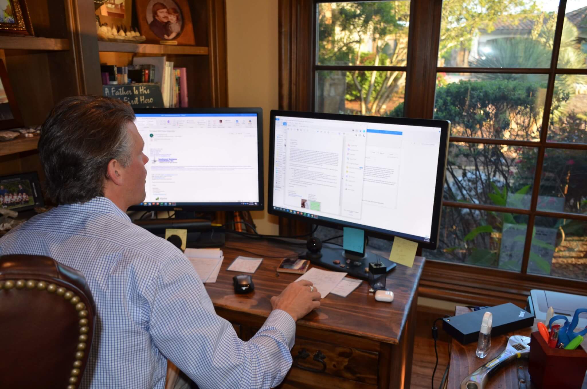 Shane Stevens, CEO of AnyPlace MD, has been working over the past month with officials from the White House, FDA, military and other leaders on COVID-19 serology tests. In this picture, he is looking at one email from the Dr. Deborah Birx, Coronavirus Response Coordinator for the Trump Administration’s White House Coronavirus Task Force. LYNETTE HAALAND