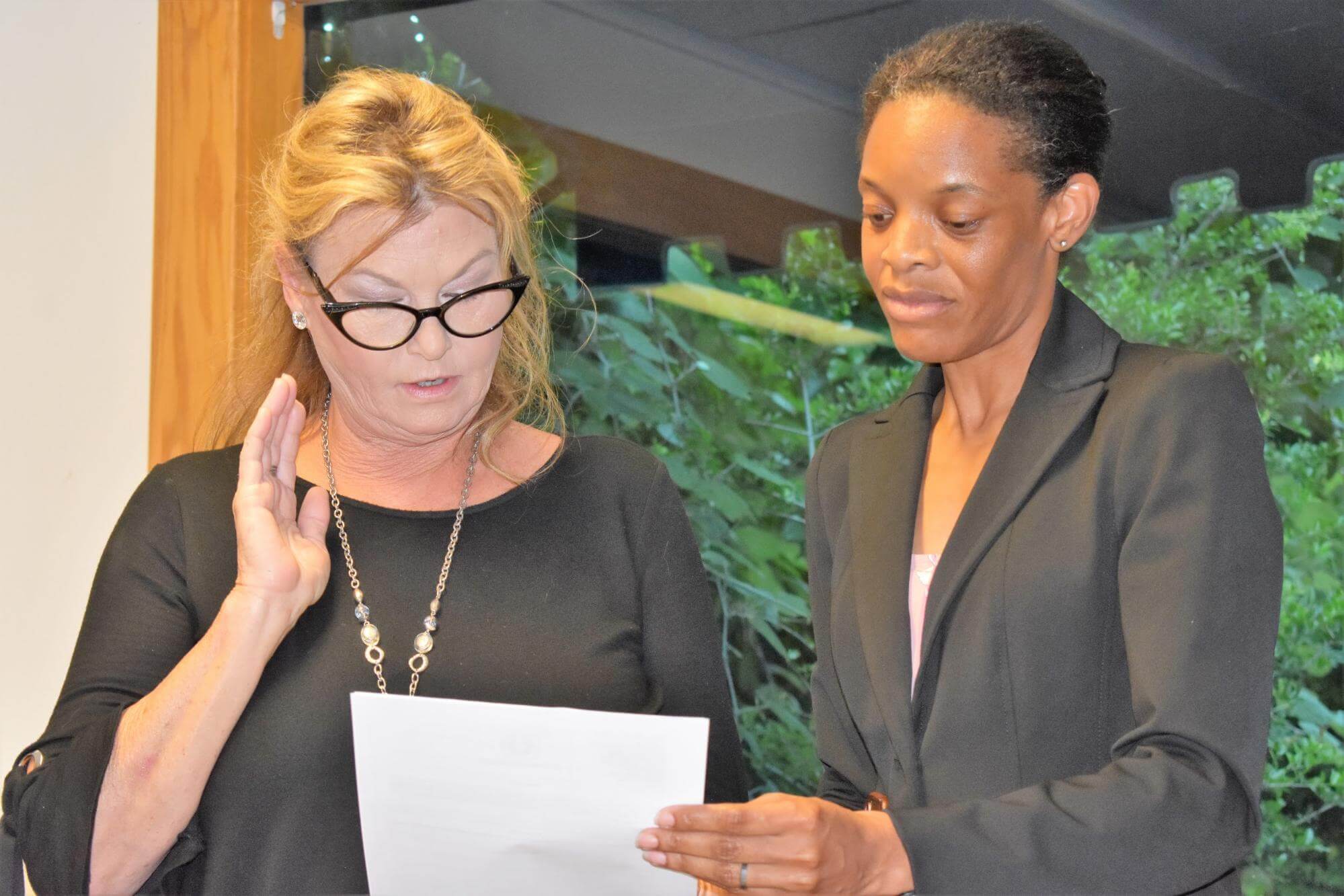 volente1 ← Previous Next → Volente Mayor Jana Nace (left) takes her oath of offi ce from temporary city secretary Nanette Akinleye during the July 2 meeting. LESLEE BASSMAN