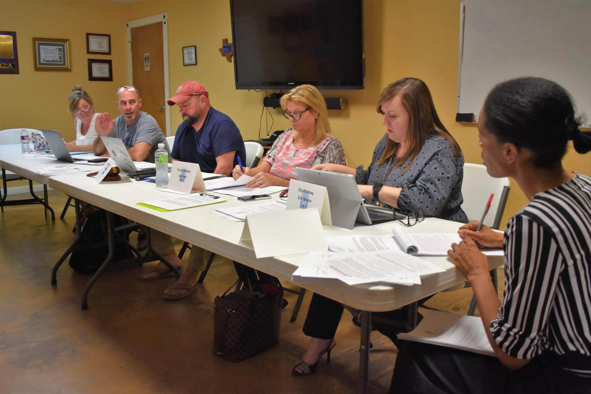Volente City Council met May 29, its first session to take up a full agenda since January. According to Mayor Pro Tem Chris Wilder (center with cap), the government couldn’t establish a quorum with the village’s Mayor David Springer and Place 2 Council Member Bill Connors consistently absent from meetings. LESLEE BASSMAN